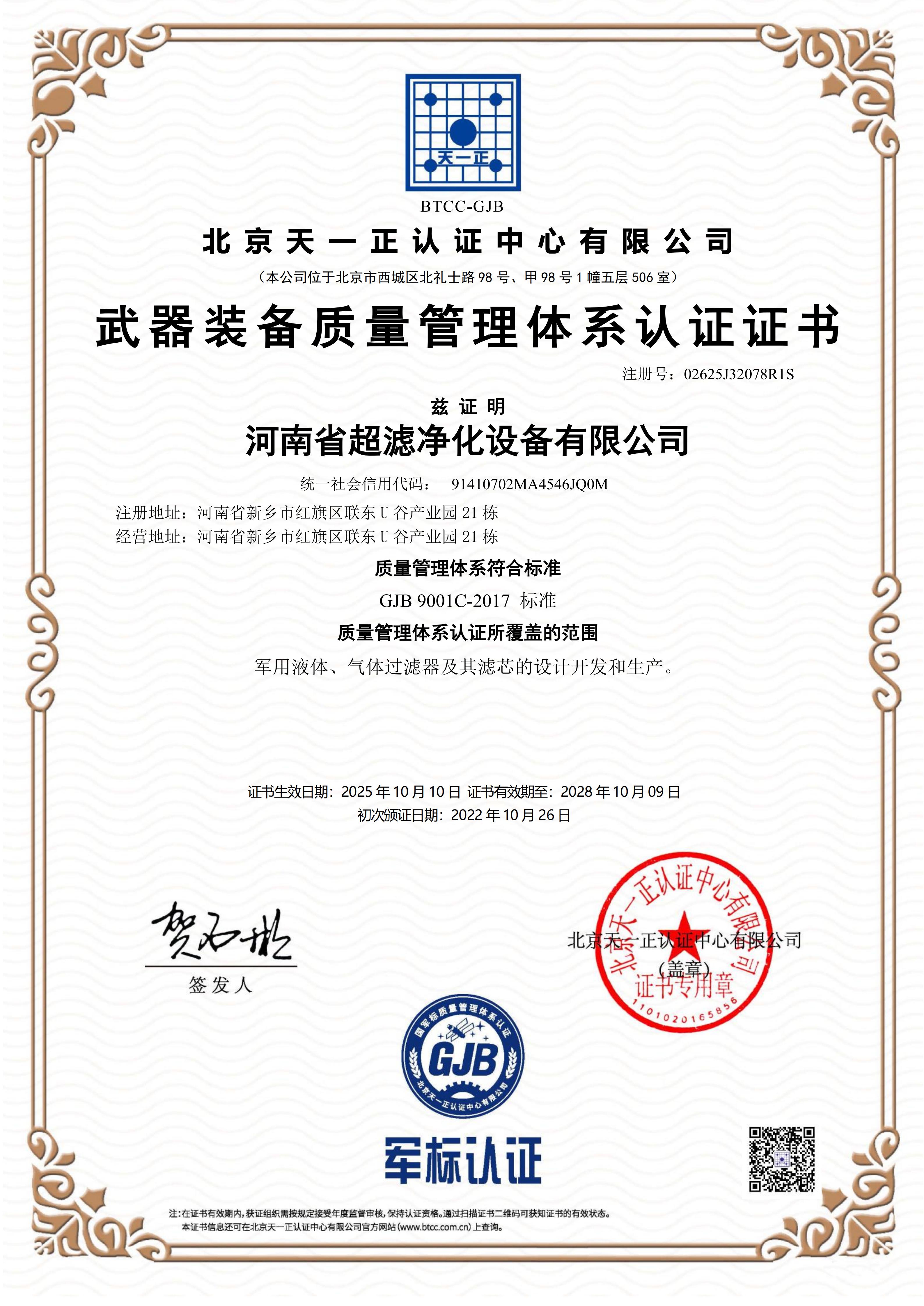 河南省k8凯发天生赢家一触即发净化设备有限公司成立于2018年,座落于河南省新乡市,是一家集滤芯、过滤器、成套过滤装置及液压附件、液压泵、特种阀等产品的研发、生产、销售、技术服务为一体的综合性企业。主要服务于国内的航空、航天、船舶、核工业、煤碳、石油化工、电力、工程机械等行业。公司拥有2项发明专 利(ZL 2024 1 0110610.0 、ZL 20243 1 1806105.1)和6项实用新型专 利(ZL 202220053751.X、ZL202222784245.0、ZL202222578329.9、ZL202222630720.9、ZL202222864294.5、ZL202222712176.2),研发人员的不懈努力,锐意进取,加上经验丰富的技工与生产设备的结合,更好的产品技术使得质量有了更可靠的保障,保证了产品的及时交付,增强了企业的核心竞争能力。公司是过滤与分离行业协会会员单位,秉承“以质量求生存,靠创新谋发展”的指导思想,始终把产品质量放在前位,不断进取,持续改进,精益求精,按照ISO9001标准建立了一套完善的质量保证管理体系,2022年通过了国 军标《GJB9001C-2017》质量体系认证,使公司的产品质量得到提升,也将规范公司的管理,为客户提供更多的、稳定的高品质产品。2023年,公司获得了高新 技术企业荣誉称号。2024年,获批成立新乡市航天精密流体元件技术工程研究中心。